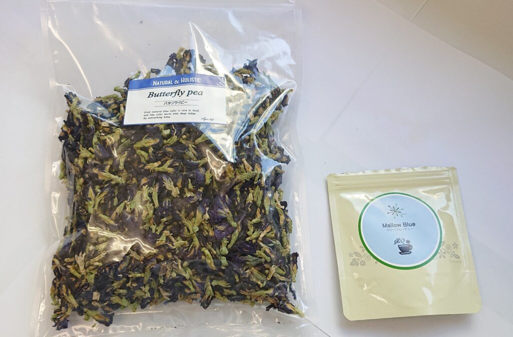 バタフライピーもマロウブルーのどちらも同じように青い色をしたお茶が出来ます。