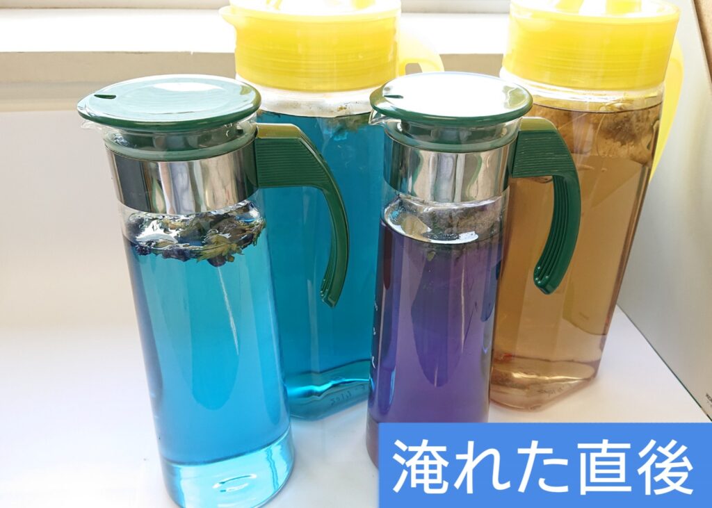 水出しの物はお湯出しの物より、より綺麗な濃い青色のお茶が出来上がった。