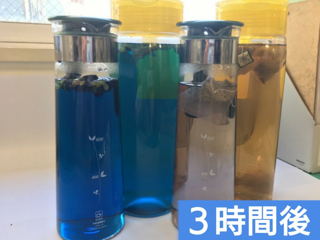 お茶の淹れ方によって呈する色が違うので発展として、バタフライピーとマロウブルーのポリフェノールを分析してみるのも面白そうだと思った。