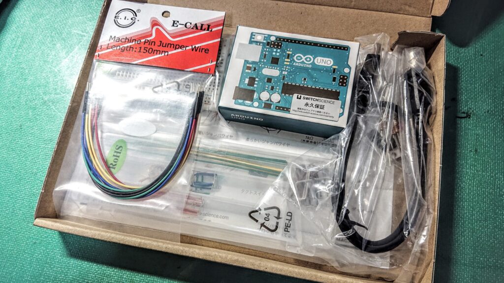 新しく始める事なので、Arduino本体のほかにも必要なもの(ブレットボードやジャンパワイヤなど)が一緒になったものが欲しいなと思い Arduinoはじめようキット を、Amazonで購入してみました。
