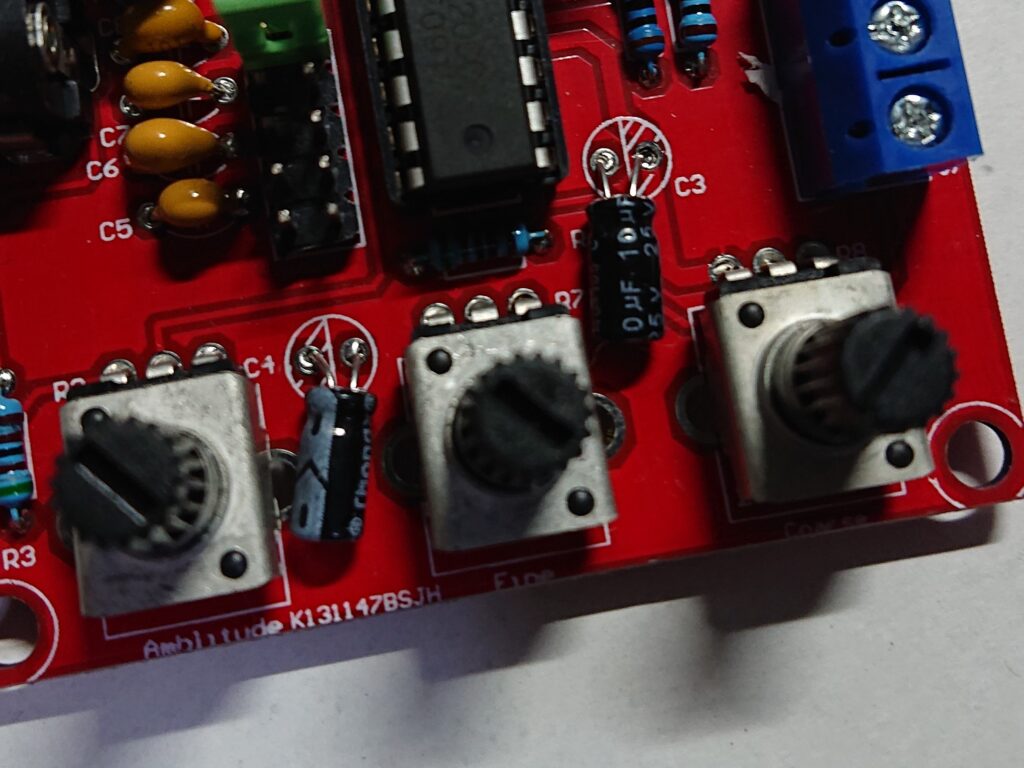 制作時はハンダづけをした時に、部品の背が高くならないものから順番に取りつけていきました。